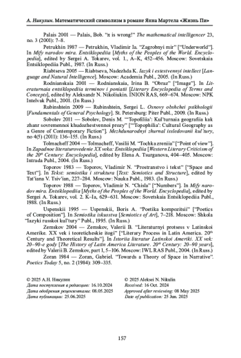 19. Топоров В.Н. Числа // Мифы народов мира. Энциклопедия / гл. ред. С.А. Токарев. М.: Сов. энциклопедия, 1988. Т. 2: К-Я. С. 629-631.