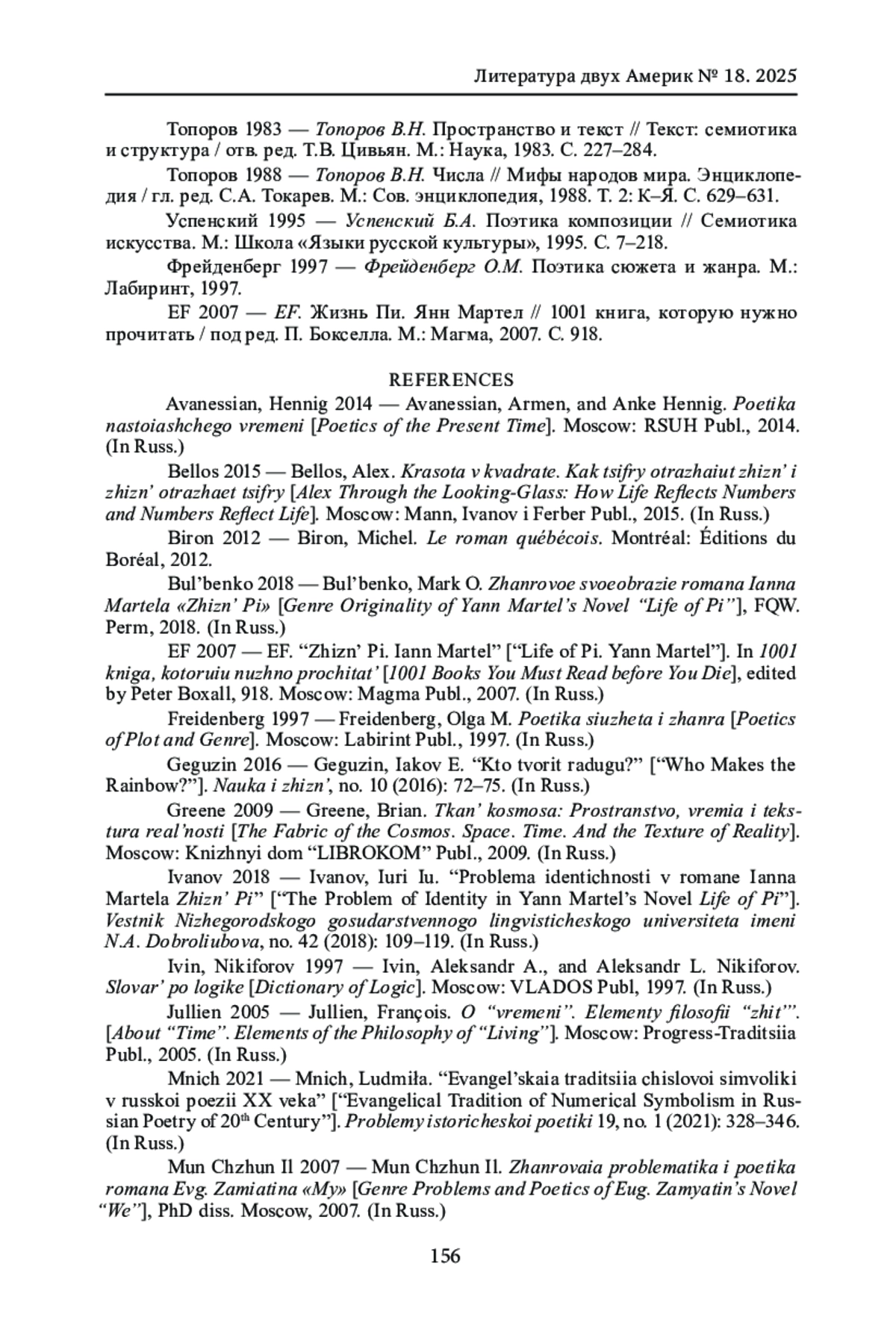 8. Иванов Ю.Ю. Проблема идентичности в романе Янна Мартела “Жизнь Пи” // Вестник Нижегородского государственного лингвистического университета им. Н.А. Добролюбова. 2018. № 42. С. 109-119. EDN: UTKTYC