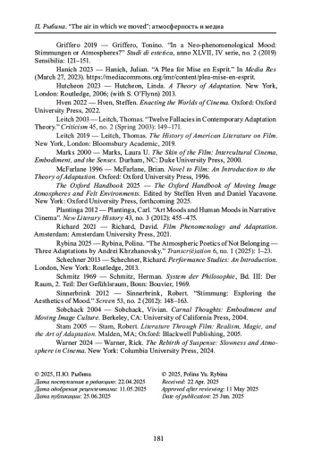 14. The Oxford Handbook of Moving Image Atmospheres and Felt Environments. Edited by Steffen Hven and Daniel Yacavone. New York: Oxford University Press, forthcoming 2025. ▼ Контекст
