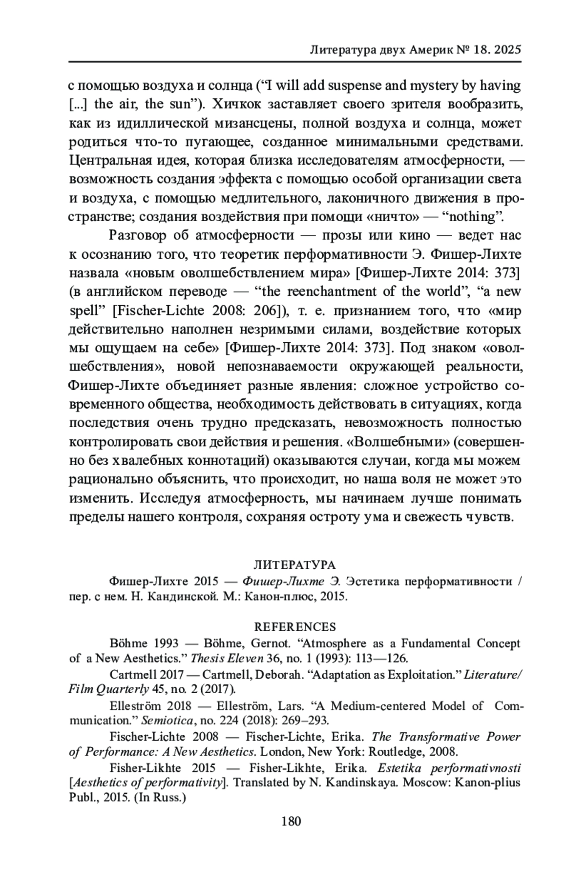 1. Фишер-Лихте Э. Эстетика перформативности / пер. с нем. Н. Кандинской. М.: Канон-плюс, 2015. EDN: YRVIRR