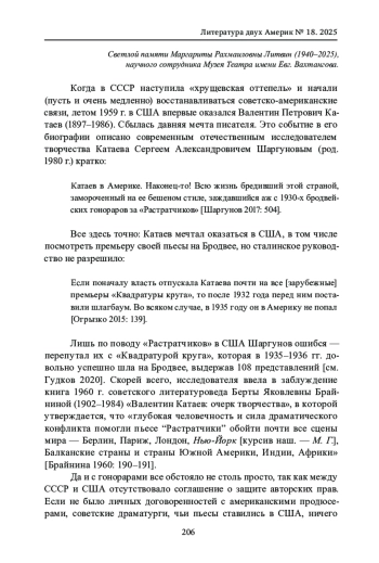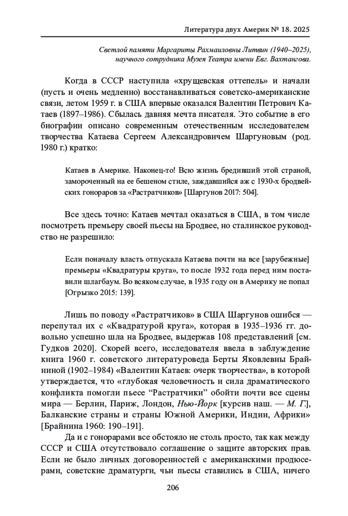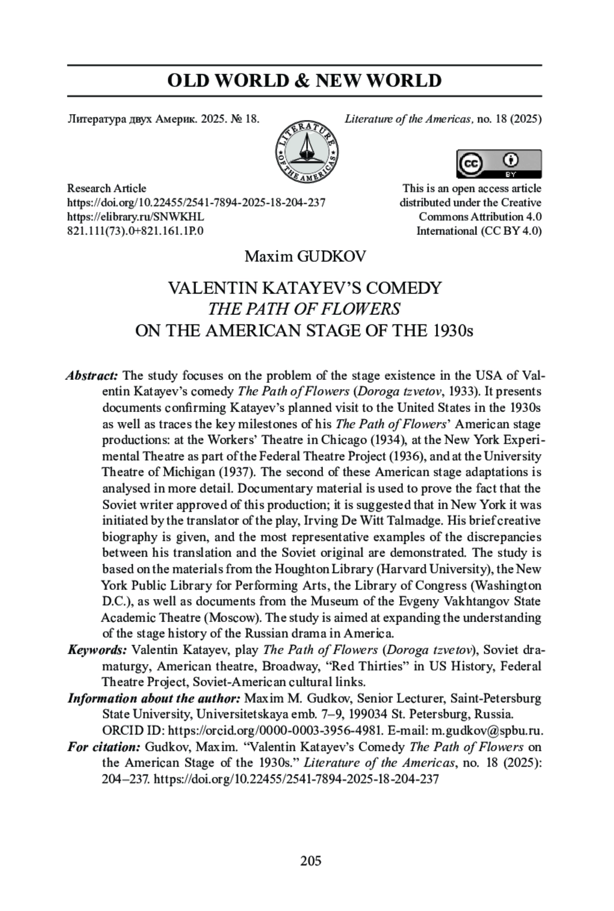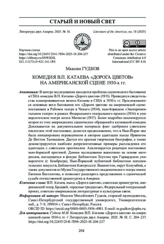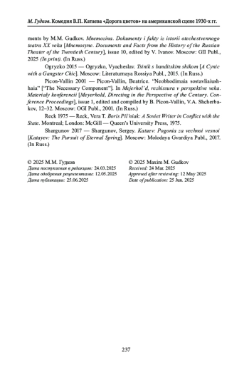 8. Гудков М.М. Советская “Женитьба” на Бродвее: “Квадратура круга” В.П. Катаева в Америке // Актуальные проблемы литературы и культуры. Ереван: Лингва, 2020. Вып. 12. С. 267-283. EDN: TKNGGV