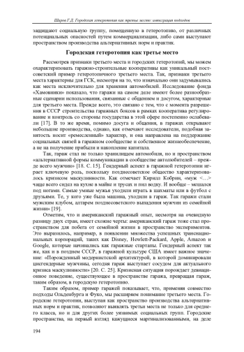 19. Кобрин К.Р. Советский гараж: история, гендер и меланхолия // Неприкосновенный запас. 2016. № 107.