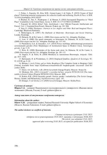 6. Rhubart D., Sun Y., Pendergrast C., Monnat S. Sociospatial Disparities in “Third Place” Availability in the United States // Socius. 2022. № 8. EDN: XCOFJR