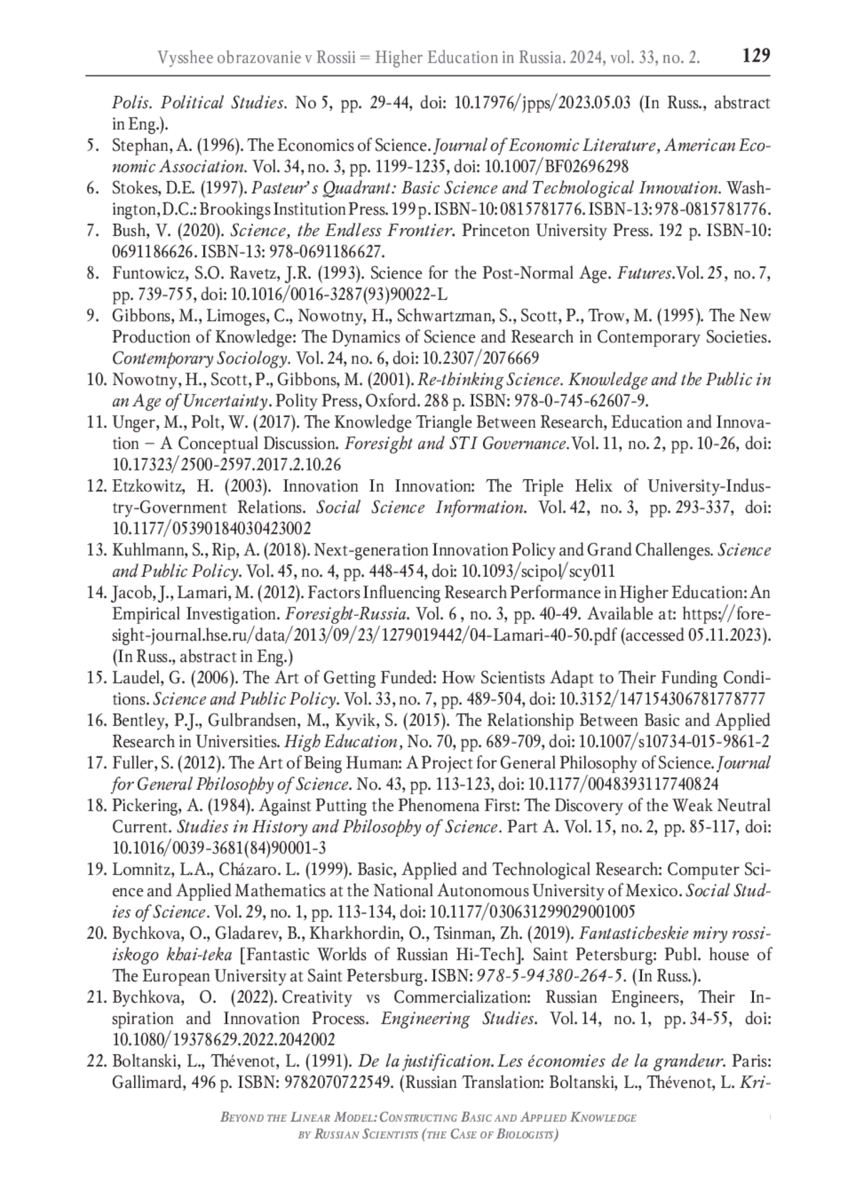 16. Bentley P.J., Gulbrandsen M., Kyvik S. The relationship between basic and applied research in universities // High Education. 2015. No. 70. P. 689-709. DOI: 10.1007/s10734-015-9861-2 EDN: HUKUBM