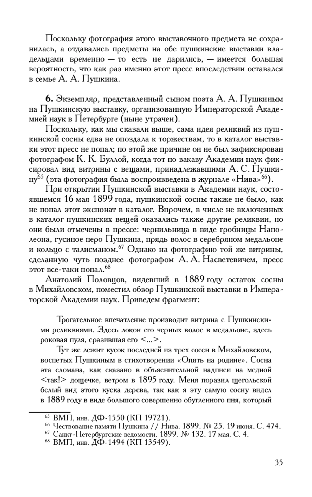 31. Февчук Л. П. Личные вещи А. С. Пушкина: (Из собрания Всесоюзного музея А. С. Пушкина). Л., 1968.