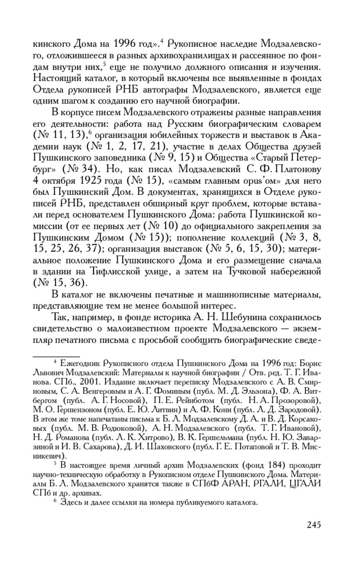 4. Ежегодник Рукописного отдела Пушкинского Дома на 1996 год: Борис Львович Модзалевский. Материалы к научной биографии / Отв. ред. Т. Г. Иванова. СПб., 2001.