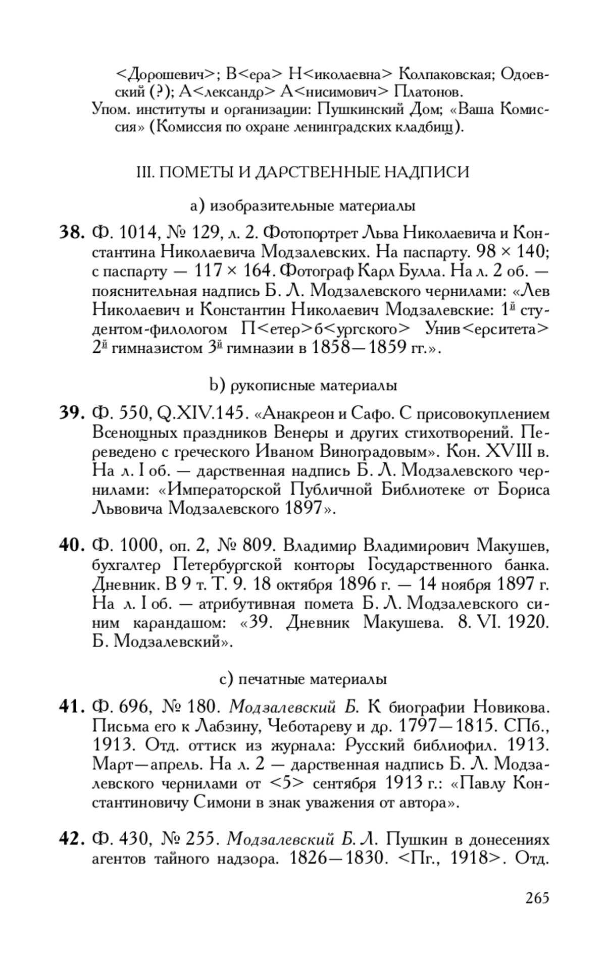 6. Измайлов Н. В. Б. Л. Модзалевский как собиратель и исследователь литературных архивов // Пушкинский Дом: Материалы к истории. 1905-2005. СПб., 2005.