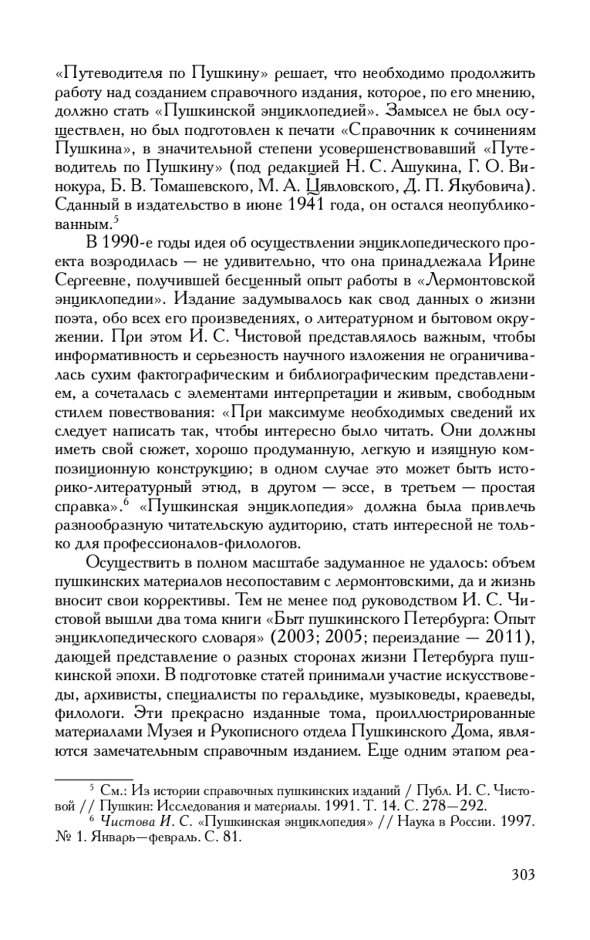 В 2024 году вышел в свет подготовленный в Отделе пушкиноведения ИРЛИ РАН пятый, заключительный, выпуск издания «Пушкинская энциклопедия: Произведения: С—Я; A—Z». Ирина Сергеевна Чистова, автор идеи и руководитель этого проекта, не увидела его завершения. 13 марта 2023 года ее не стало.
