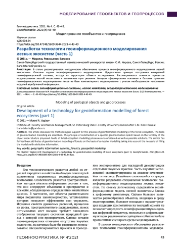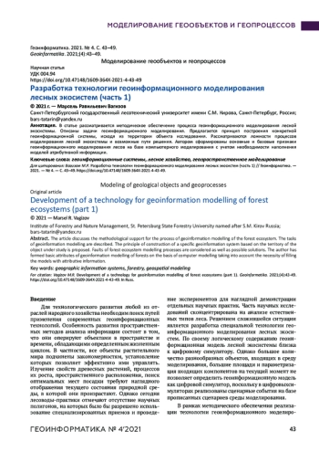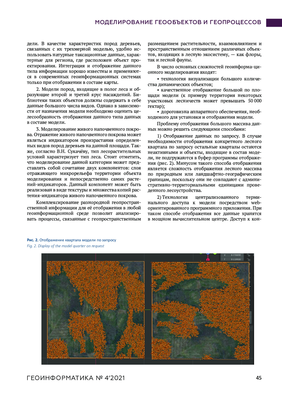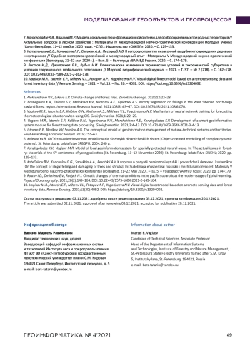 10. Vagisov M.R., Istomin E.P., Miheev V.L., Potapov A.P., Yagotinceva N.V. Visual digital forest model based on a remote sensing data and forest inventory data // Remote Sensing. - 2021. - Vol. 13. - No. 20. - 4092. DOI: 10.3390/rs13204092
