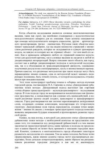 Когда объектом исследования являются сложные многокомпонентные явления, такие как город, мы неизбежно сталкиваемся с недостаточностью методологического аппарата для их описания