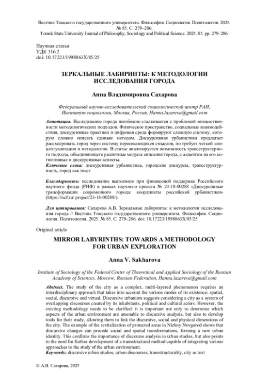 Исследование города неизбежно сталкивается с проблемой множественности методологических подходов. Физическое пространство, социальные взаимодействия, дискурсивные практики и цифровая среда формируют сложную систему, которую сложно описать единым методом. Дискурсивная урбанистика предлагает рассматривать город через систему пересекающихся смыслов, но требует четкой концептуализации и методологии. В статье анализируется возможность трансструктурного подхода, объединяющего различные модусы описания города, с акцентом на его когнитивные и дискурсивные аспекты.