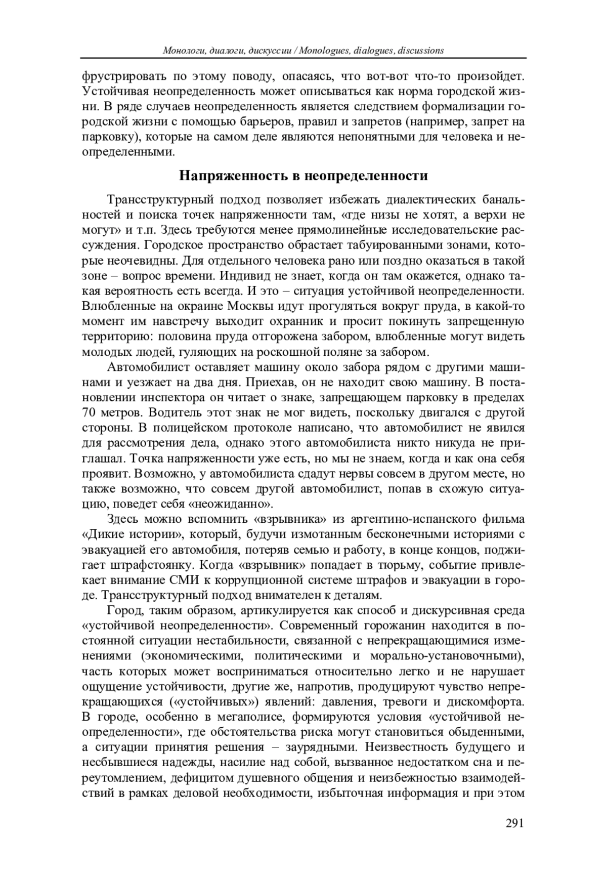 В статье раскрываются потенциалы трансструктурного метода в пространственно-дискурсивных городских исследованиях. Метод обнаруживает эффективность применительно к агломерациям и позволяет выявлять сложности их функционирования, в то время как два дополнительных исследовательских направления - гуманитарная аналитика и эпистемологическая урбанистика - помогают найти решения фиксируемых проблем. В этом контексте изучаются антиномии определенности и неопределенности, центра и периферии.