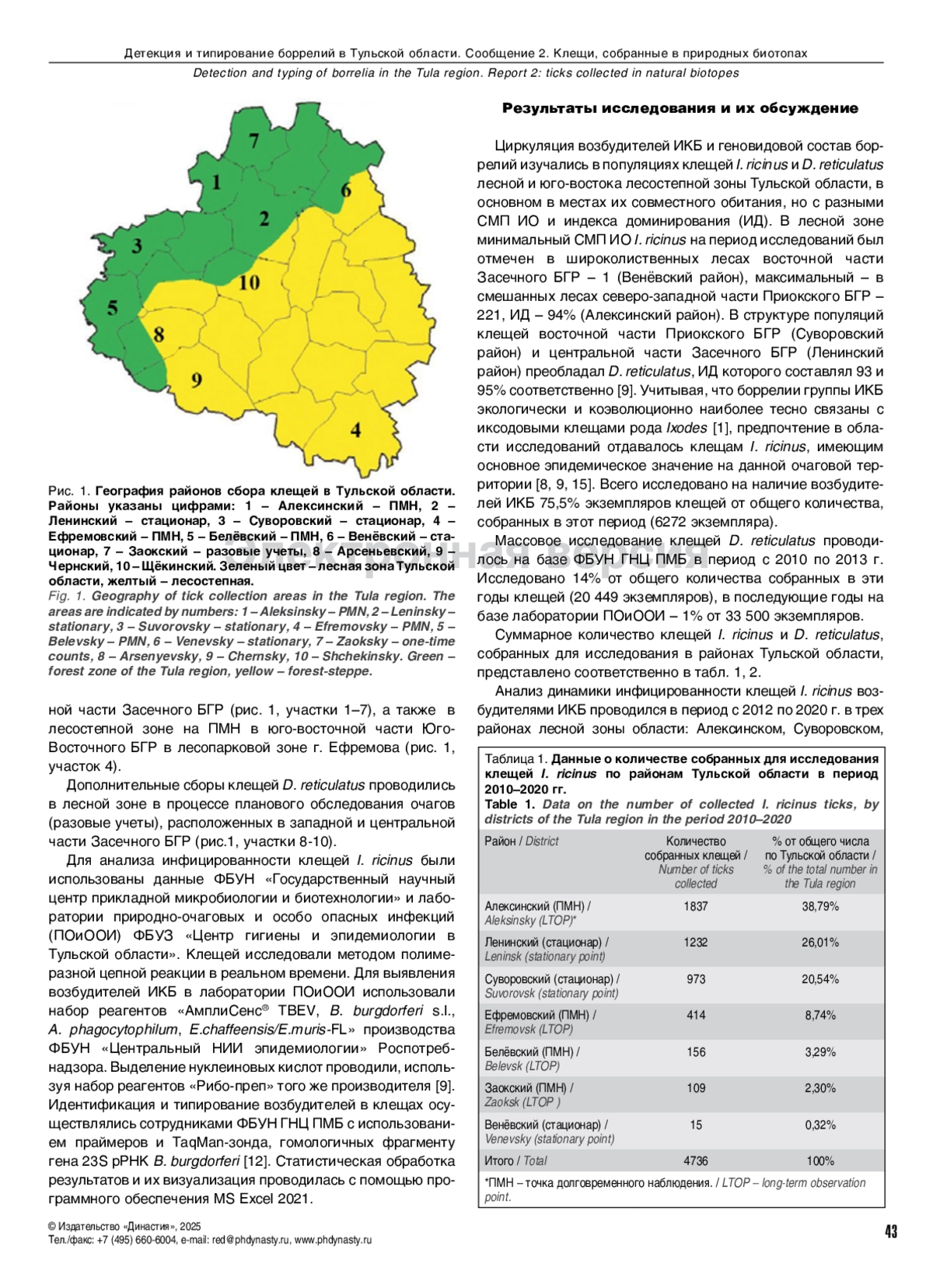 Khokhlachkina IA, Ignatkova AS, Kozlova TV, Chekanova TA. Epidemiological and epizootological situation of tick-borne infections in the Tula region. Epidemiology and Infectious Diseases. Current Items. 2024;14(4):17-25. (In Russian). DOI: 10.18565/epidem.2024.14.4.17-25