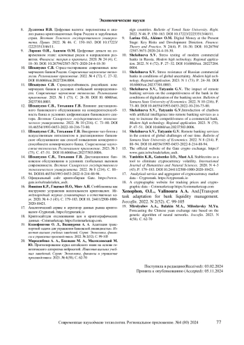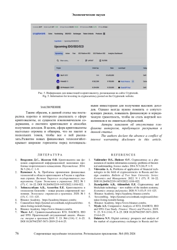 2. Вдовенко А. А. Проблемы применения финансовых технологий в области криптовалют в России и зарубежных странах. Вестник Тверского государственного университета. Серия: Экономика и управление. 2022. № 1 (57). С. 16-22. DOI: 10.26456/2219-1453/2022.1.016-022 EDN: YIVDEN
