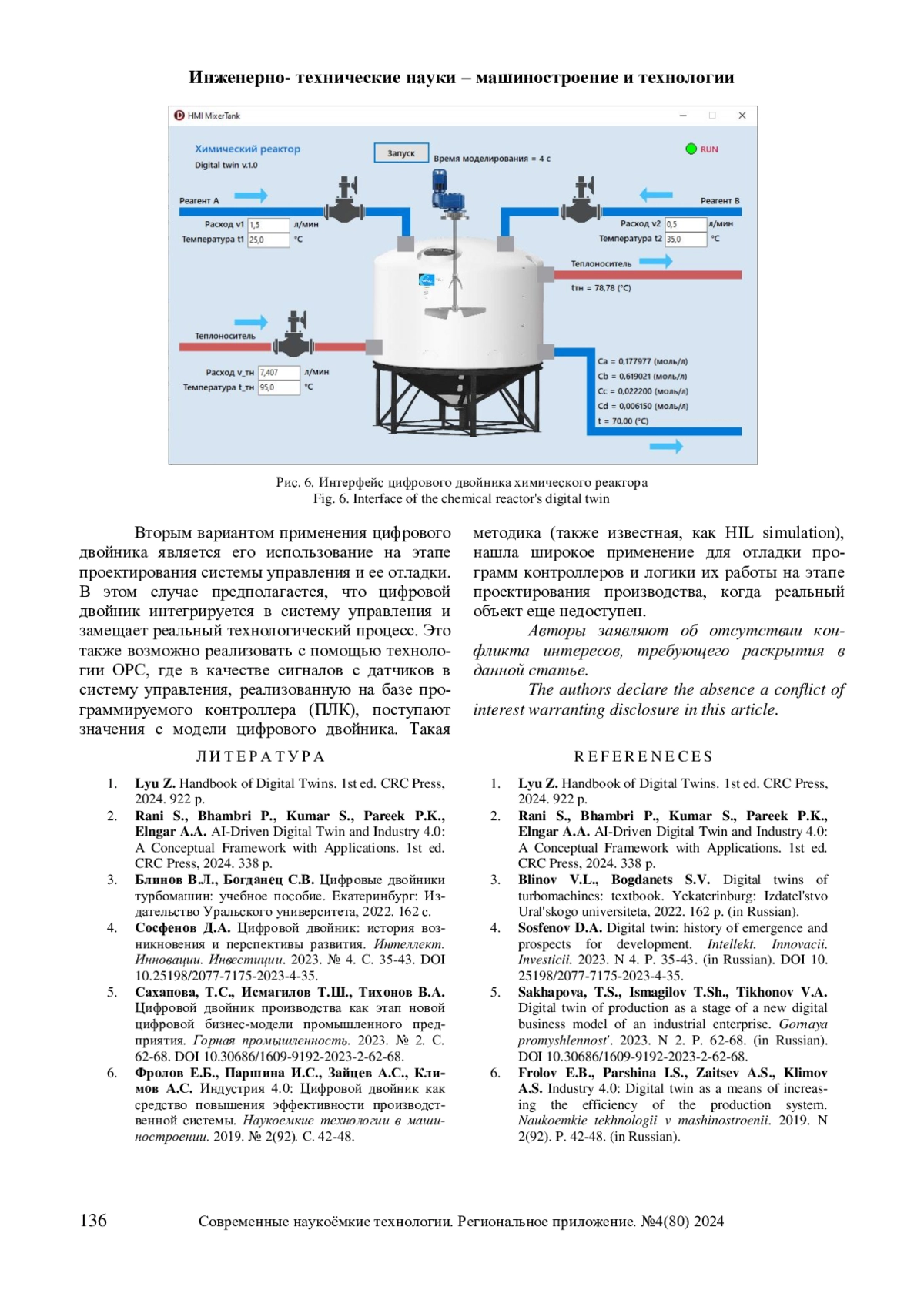 4. Сосфенов Д.А. Цифровой двойник: история возникновения и перспективы развития. Интеллект. Инновации. Инвестиции. 2023. № 4. С. 35-43. DOI: 10.25198/2077-7175-2023-4-35 EDN: FKIQOC