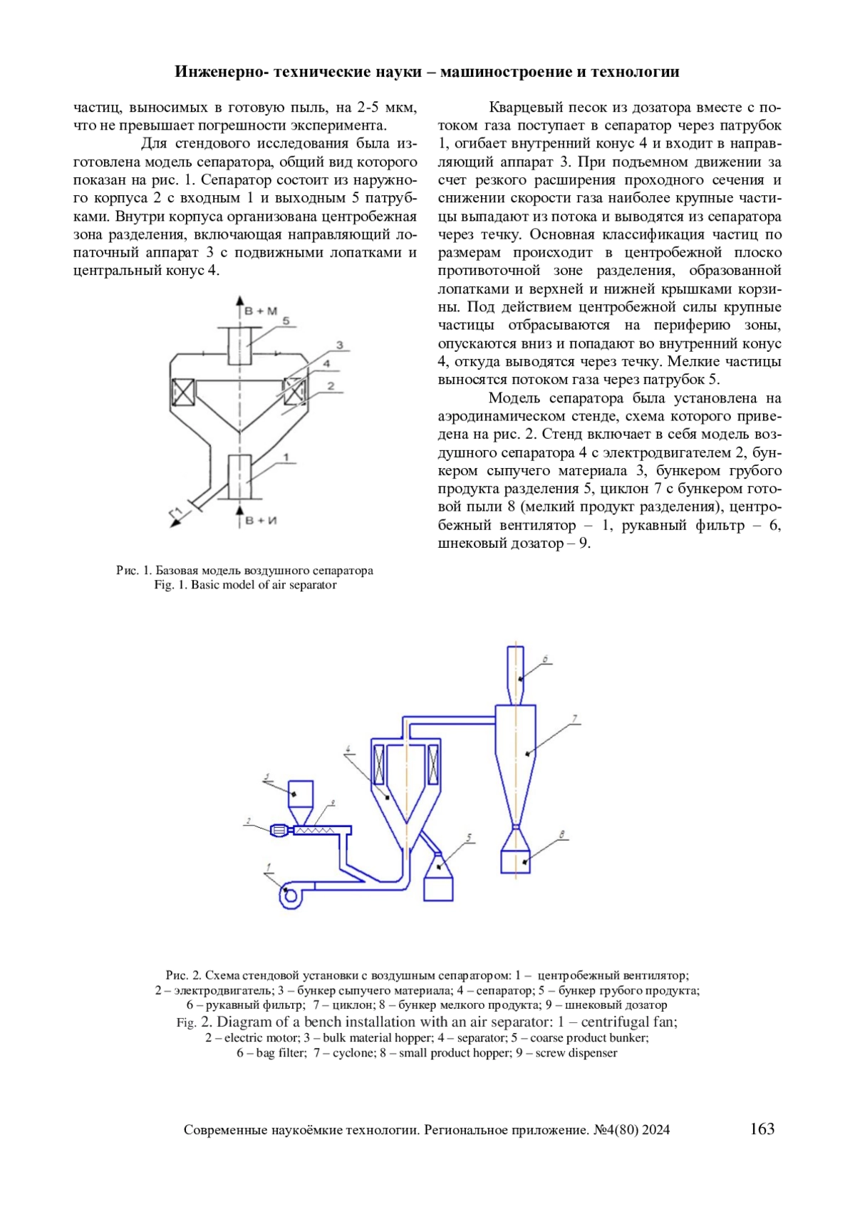 Экспериментальные исследования, представленные в данной статье, были направлены на определение влияния конструктивного оформления и режимных параметров работы воздушного сепаратора на эффективность разделения дисперсных материалов.