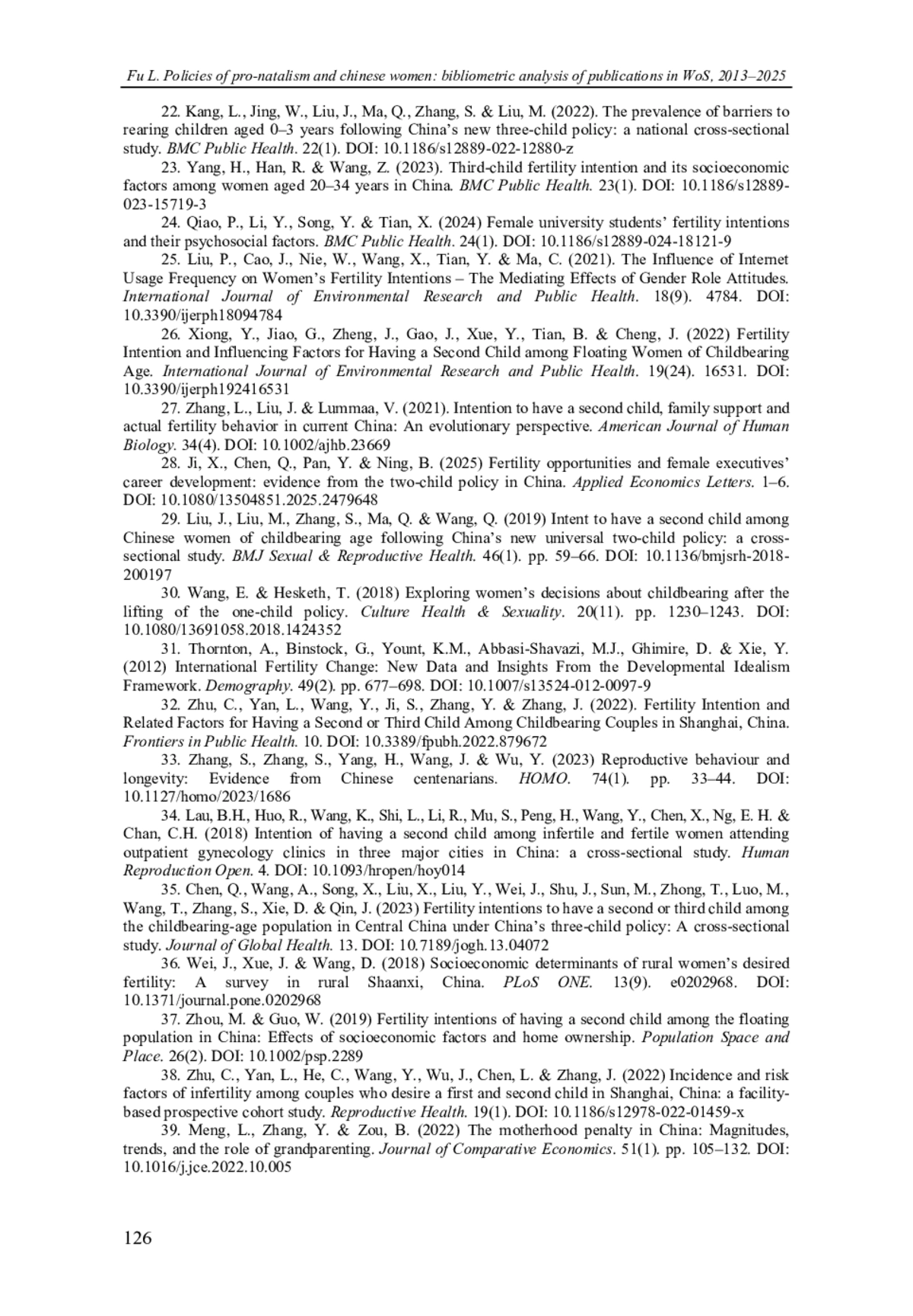 24. Qiao, P., Li, Y., Song, Y. & Tian, X. (2024) Female university students’ fertility intentions and their psychosocial factors. BMC Public Health. 24(1). 10.1186/s 12889-024-18121-9. DOI: 10.1186/s12889-024-18121-9