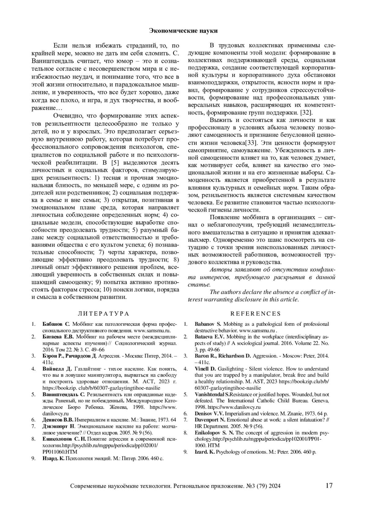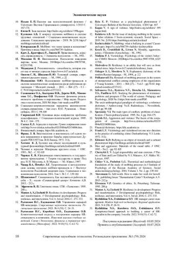 19. Селиванова О.А., Быстрова Н.В., Дереча И.И., Мамонтова Т.С., Панфилова О.В. Изучение феномена резильентности: проблемы и перспективы // Мир науки. Педагогика и психология, 2020 №3.https://mir-nauki.com/PDF. EDN: TSLCPR