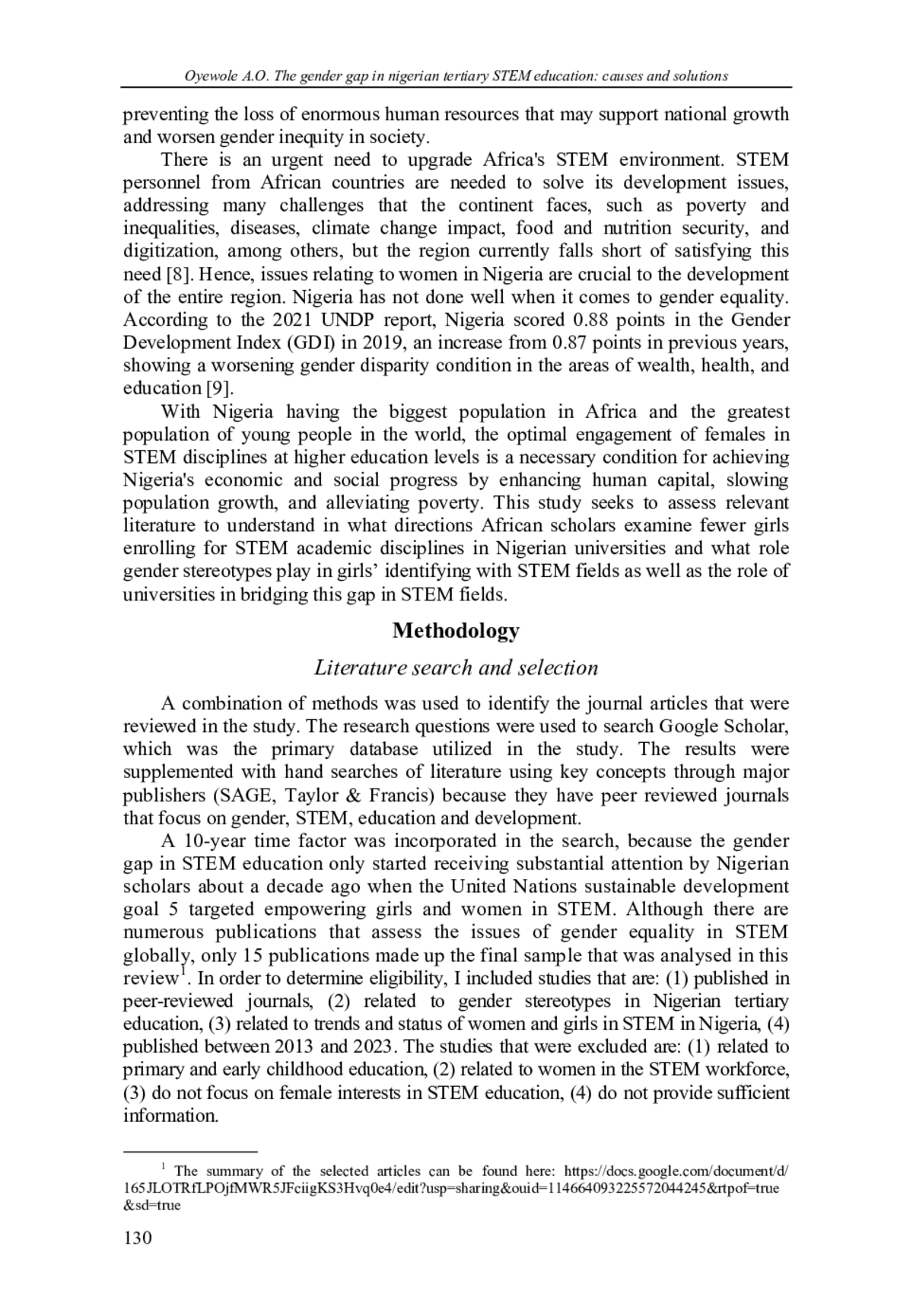 2. Adepoju, O.A., Ibhawoh, B. & Fayomi, O.O. (2020) Educational Disparity in Nigeria: A Gendered Analysis. Journal of South African Business Research. 2020. DOI: 10.5171/2020.276721