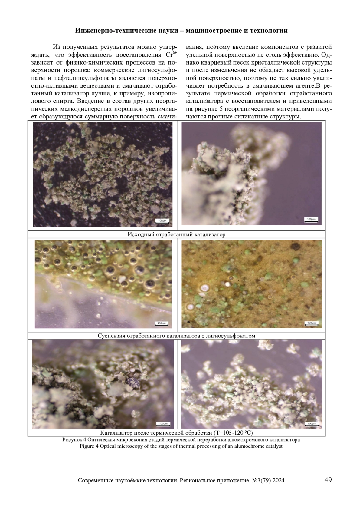 7. Pyagay, I.; Zubkova, O.; Zubakina, M.; Sizyakov, V. Method for Decontamination of Toxic Aluminochrome Catalyst Sludge by Reduction of Hexavalent Chromium. Inorganics 2023, 11, 284. DOI: 10.3390/inorganics11070284 EDN: WBTVAH