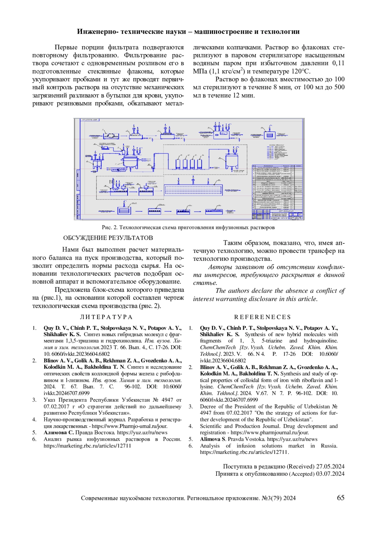 2. Blinov A. V., Golik A. B., Rekhman Z. A., Gvozdenko A. A., Kolodkin M. A., Bakholdina T. N. Синтез и исследование оптических свойств коллоидной формы железа с рибофлавином и l-лизином. Изв. вузов. Химия и хим. технология. 2024. Т. 67. Вып. 7. С. 96-102. 10.6060/ ivkkt.20246707.6999. DOI: 10.6060/ivkkt.20246707.6999 EDN: ABDADN