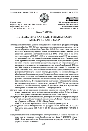 В статье исследуется литературное и публицистическое творчество американского писателя Джона Ричарда Херси (1914-1993). Основное внимание уделяется малоизученному периоду в биографии писателя, когда он, будучи корреспондентом журнала Time в Советском Союзе, столкнулся с цензурой, ограничениями в работе и сложностями во взаимодействии с советской культурной средой. На основе архивных материалов (РГАЛИ), переписки с Константином Симоновым, а также советских публикаций и переводов работ Херси раскрывается двойственность его восприятия в СССР: с одной стороны (в военные годы) - как «попутчика», с другой (в период холодной войны) - как представителя «враждебной» идеологии, открывшего миру разрушительную силу американского атомного оружия. Исследование также освещает послевоенную карьеру Херси, его участие в движении против войны во Вьетнаме и сложности его интеграции в советский литературный контекст. Статья вносит вклад в изучение межнациональных культурных связей, демонстрируя, как политические реалии холодной войны влияли на рецепцию текстов, сочетающих документальность и художественность.