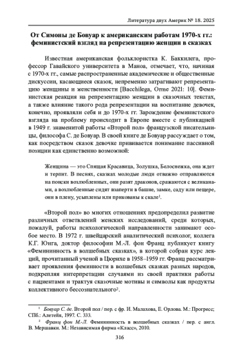 Известная американская фольклористка К. Баккилега, профессор Гавайского университета в Маноа, отмечает, что, начиная с 1970-х гг., самые распространенные академические и общественные дискуссии, касающиеся сказок, непременно затрагивают репрезентацию женщины и женственности [Bacchilega, Orme 2021: 10].