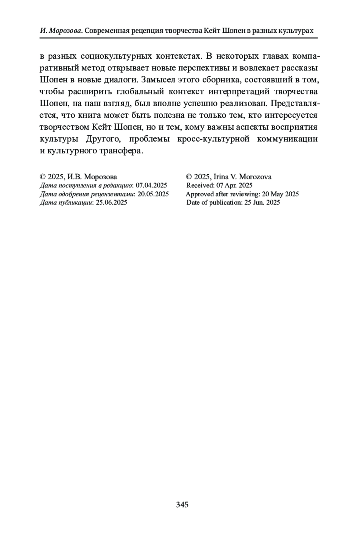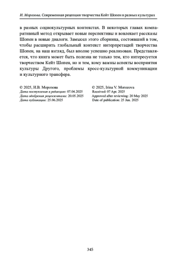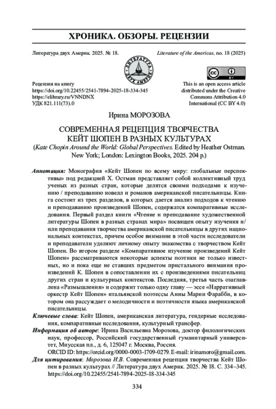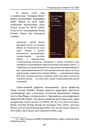 В начале этого года в издательстве “Lexington Books” вышла коллективная монография «Кейт Шопен во всем мире: глобальные перспективы» (Kate Chopin Around the World: Global Perspectives) под редакцией Хизер Остман.