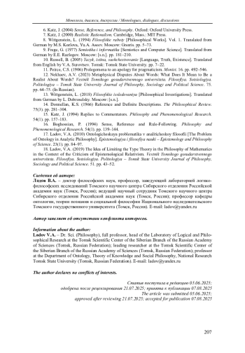 18. Ладов В.А. Идея ограничения теории типов в философии математики в контексте критики эпистемологического релятивизма // Вестник Томского государственного университета. Философия. Социология. Политология. 2019. № 51. С. 43-52. EDN: NSYQJK