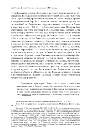 Впервые публикуется мемуарный очерк о В. Я. Брюсове, написанный вскоре после смерти поэта его приятелем, символистом младшего поколения С. М. Соловьевым. Их литературные и человеческие отношения были непростые, что прямо отражено в очерке. В своем мемуаре Соловьев останавливается на середине 1900-х гг., времени наиболее тесного общения двух поэтов и обретения Брюсовым широкого литературного признания. Рассказывая ряд интересных жизненных историй, мемуарист в то же время старается показать становление Брюсова как главы новой школы русской поэзии и литературы, отводя ему примерно ту же роль, что столетием раньше выпало сыграть А. С. Пушкину. Вспоминая Брюсова в суете редакционных дел по журналу «Весы», книгоиздательству «Скорпион», в литературных и личных стычках и полемиках, в кругу семьи и в напряженных любовных коллизиях, Соловьев не забывает о главном - о том, что герой его очерка был прежде всего поэтом. Воспоминания печатаются полностью по авторской рукописи С. М. Соловьева, публикация сопровождена научным комментарием.