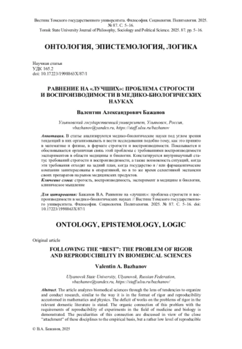 5. Бажанов В.А. Феномен воспроизводимости в фокусе эпистемологии и философии науки // Вопросы философии. 2022. № 5. С. 25-35. EDN: OEWVED
