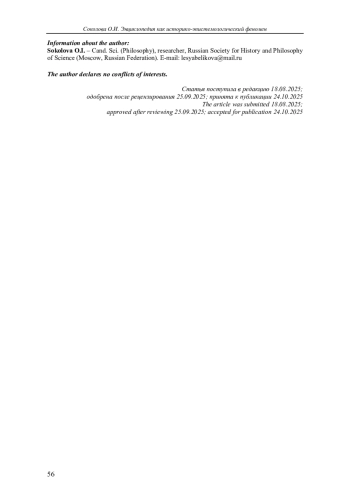 9. Gaukroger S. Encyclopedias and Encyclopedic Knowledge. P. 584-588 // Encyclopedia of Early Modern Philosophy and the Sciences. Springer Nature Switzerland, 2022. 2243 p.