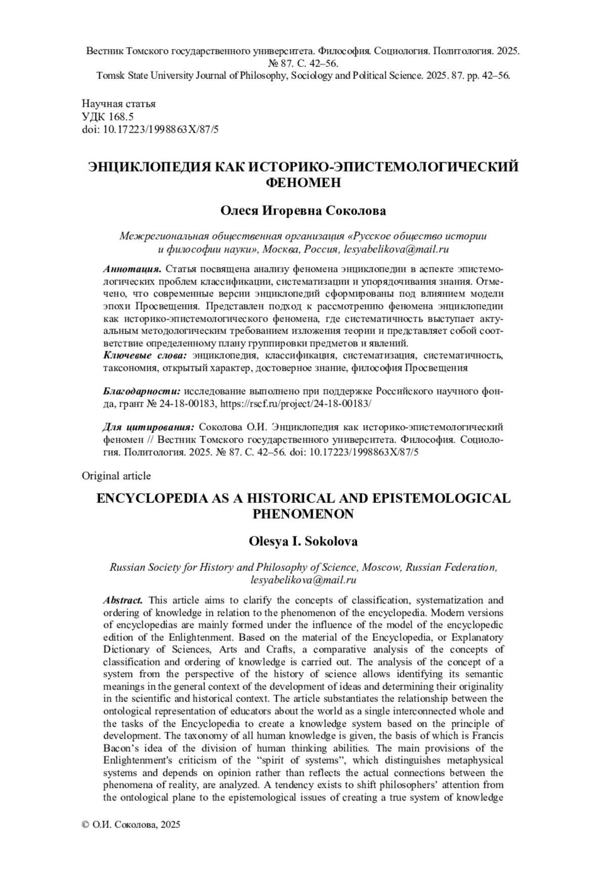 13. Столярова О.Е. Наука и идеалы гуманизма // Вестник Томского государственного университета. Философия. Социология. Политология. 2021. № 60. С. 248-253. EDN: CLRUYE