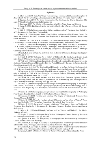 8. Rorty R. The Historiography of Philosophy: Four Genres // Philosophy in History / ed. by R. Rorty, J.B. Schneewind, Q. Skinner. Cambridge: Cambridge University Press, 1984. P. 49-76.