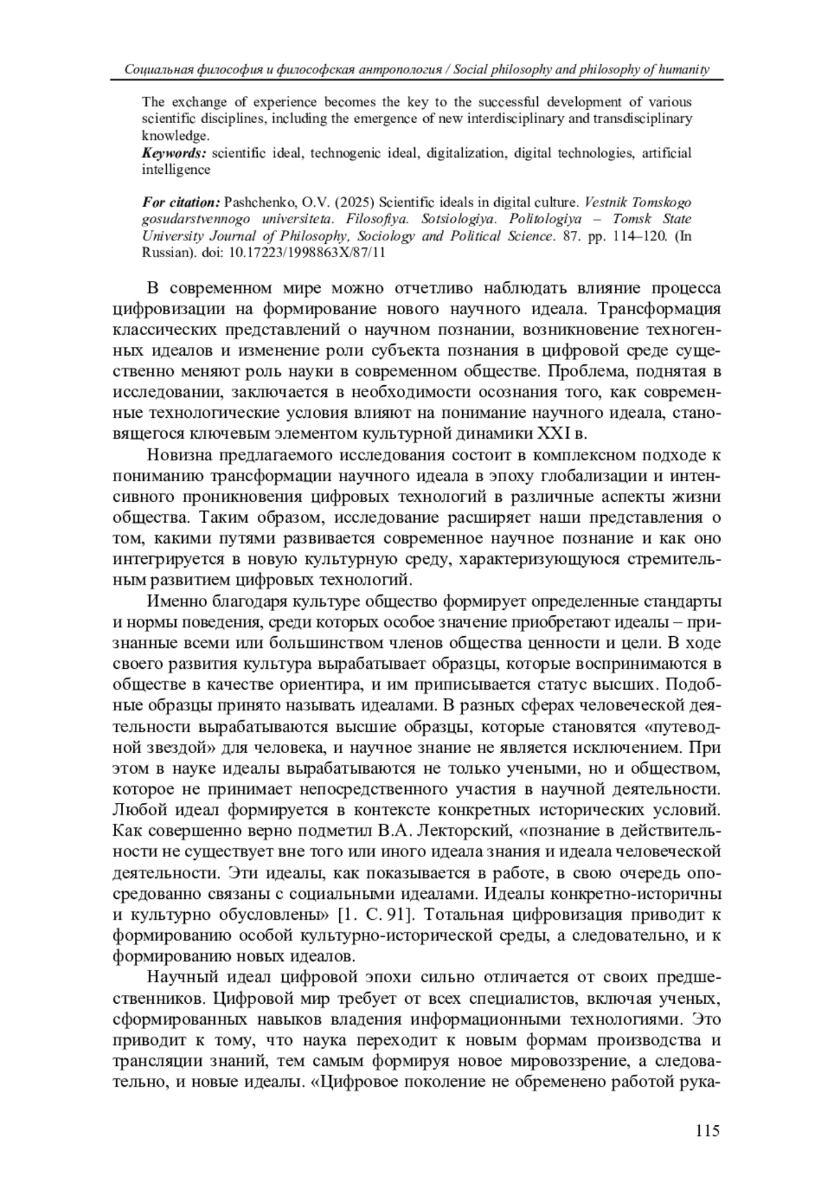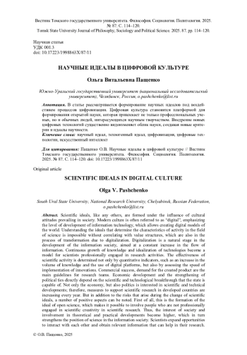 В современном мире можно отчетливо наблюдать влияние процесса цифровизации на формирование нового научного идеала. Трансформация классических представлений о научном познании, возникновение техногенных идеалов и изменение роли субъекта познания в цифровой среде существенно меняют роль науки в современном обществе.