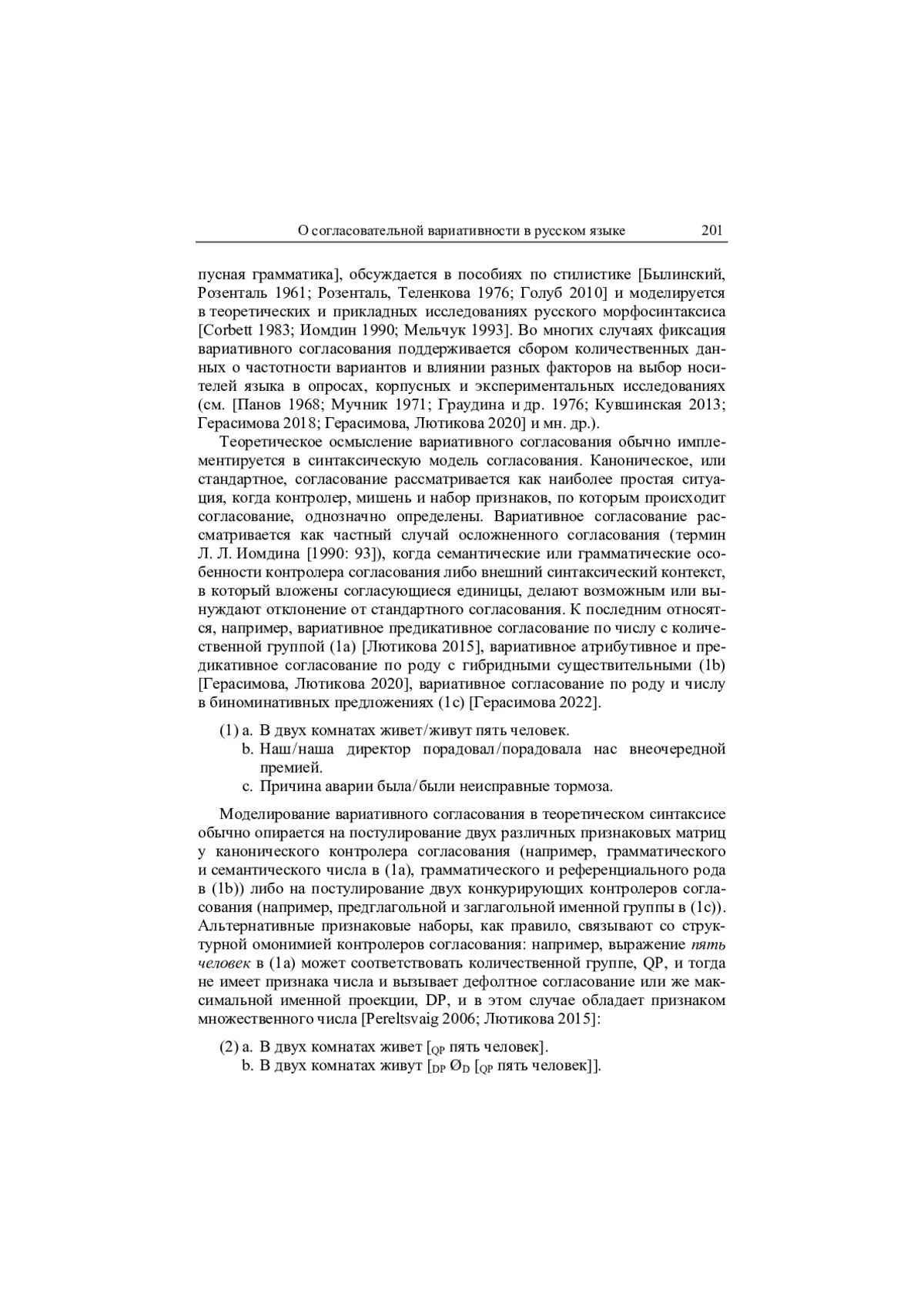 4. Герасимова, Лютикова 2020 - А. А. Герасимова, Е. А. Лютикова. К проблеме вариативности языковых данных: рассогласование по роду в русском языке // Вестник Московского университета. Серия 9: Филология. 2020. № 2. С. 25-37. EDN: CZKQPA