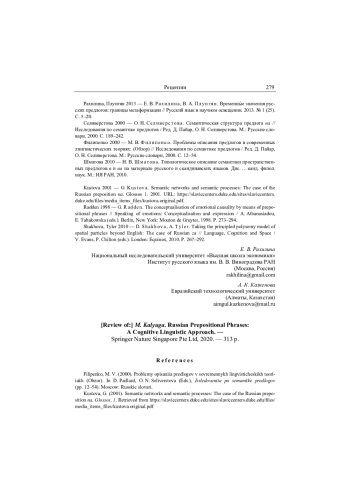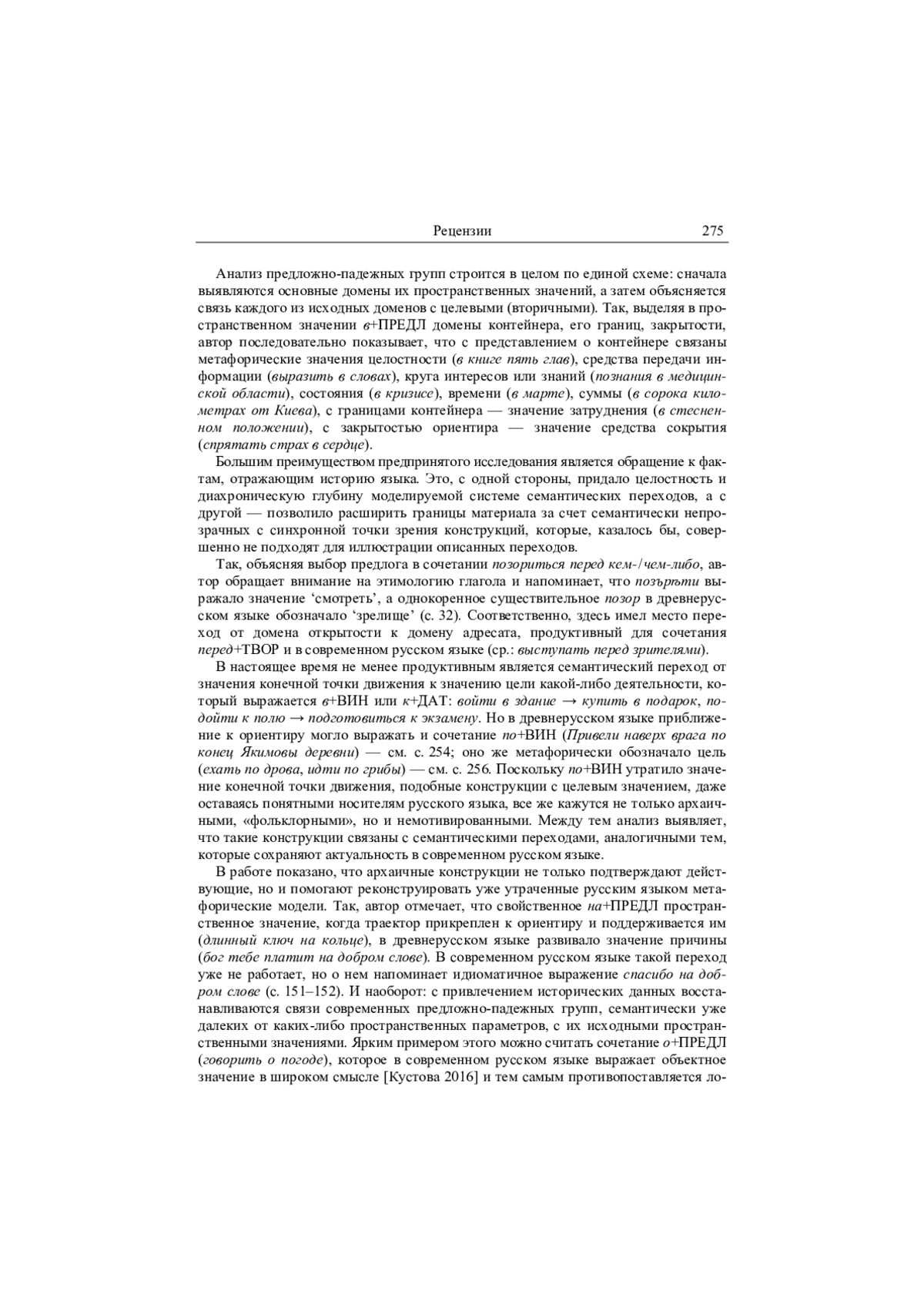 Исследование семантики предлогов, падежей и предложно-падежных сочетаний в целом в лингвистике и в русистике в частности имеет богатые традиции и реализуется в рамках нескольких теоретических подходов, см. обзоры литературы [Филипенко 2000; Шматова 2010: 12–26]. Но книга Марики Калюги подтверждает, что накопленные в лингвистической науке знания о достаточно хорошо изученном объекте могут быть еще дополнены анализом языковых фактов, пока не получивших необходимого освещения