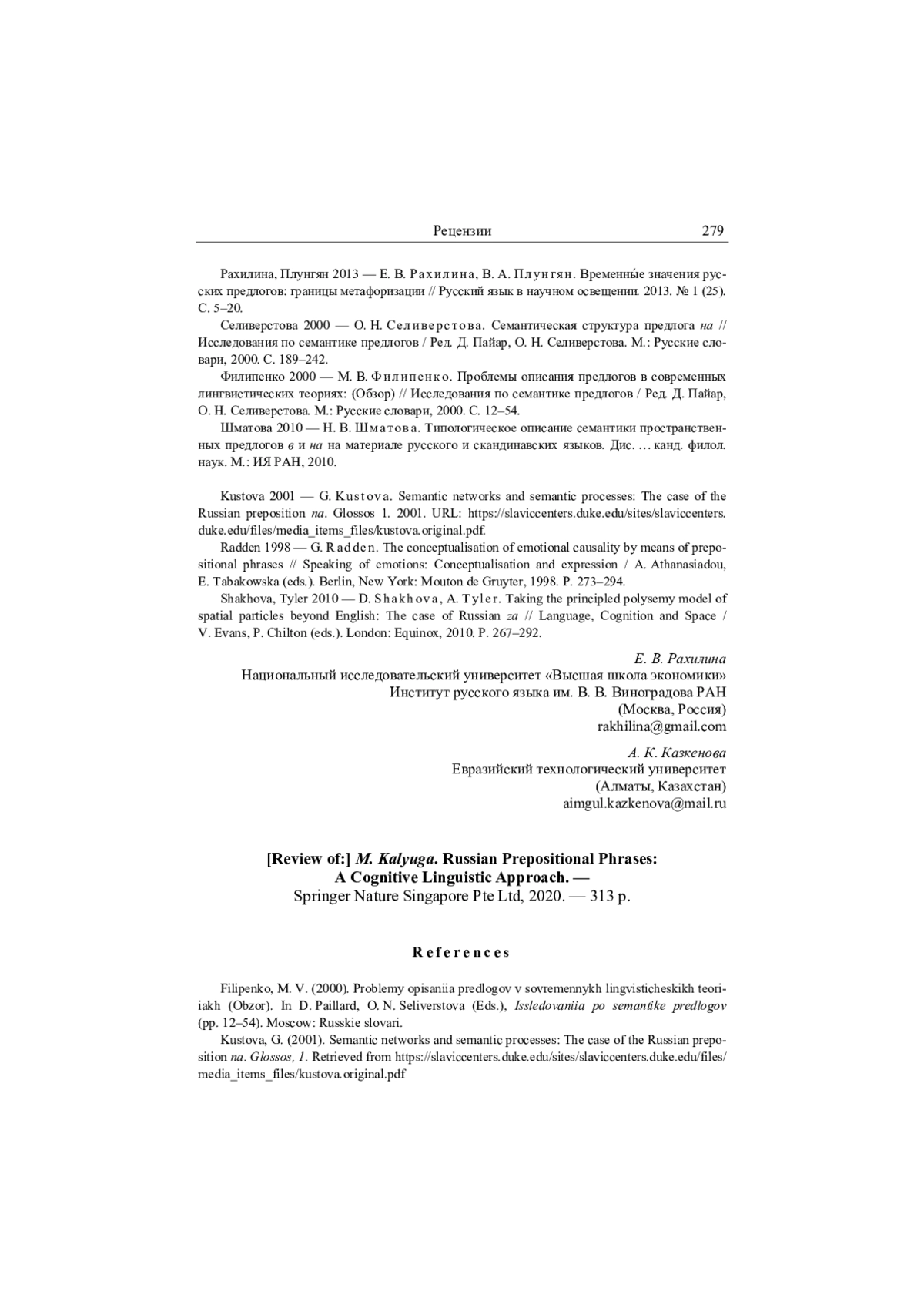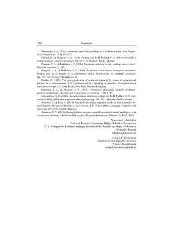 12. Shakhova, Tyler 2010 - D. Shakhova, A. Tyler. Taking the principled polysemy model of spatial particles beyond English: The case of Russian za // Language, Cognition and Space /V. Evans, P. Chilton (eds.). London: Equinox, 2010. P. 267-292.