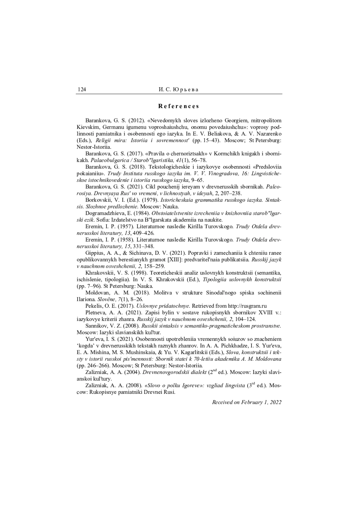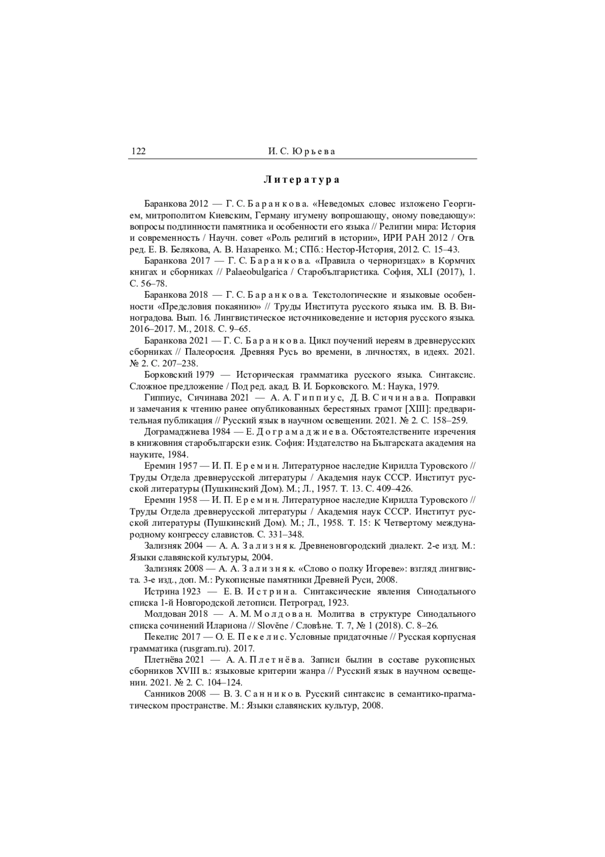35. Баранкова 2012 - Г. С. Баранкова. “Неведомых словес изложено Георгием, митрополитом Киевским, Герману игумену вопрошающу, оному поведающу”: вопросы подлинности памятника и особенности его языка // Религии мира: История и современность / Научн. совет “Роль религий в истории”, ИРИ РАН 2012 / Отв. ред. Е. В. Белякова, А. В. Назаренко. М.; СПб.: Нестор-История, 2012. С. 15-43.