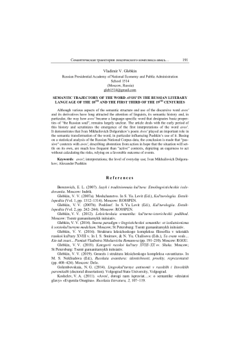 25. Глебкин 2019 - В. В. Глебкин. Генезис и структура лексического комплекса “авантюра” // Русская авантюра: идентичности, проекты, репрезентации. М.: Издательский дом “Дело”, 2019. С. 408-424.