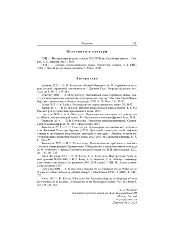 4. Бунатиру 2021 - Э. М. Бунатиру. Непонятный язык Курбского: новые подходы к интерпретации “аномалий” в исторических текстах // Вестник Санкт-Петербургского университета. Язык и литература. 2021. Т. 18. Вып. 1. С. 37-55. EDN: ZWCWQC