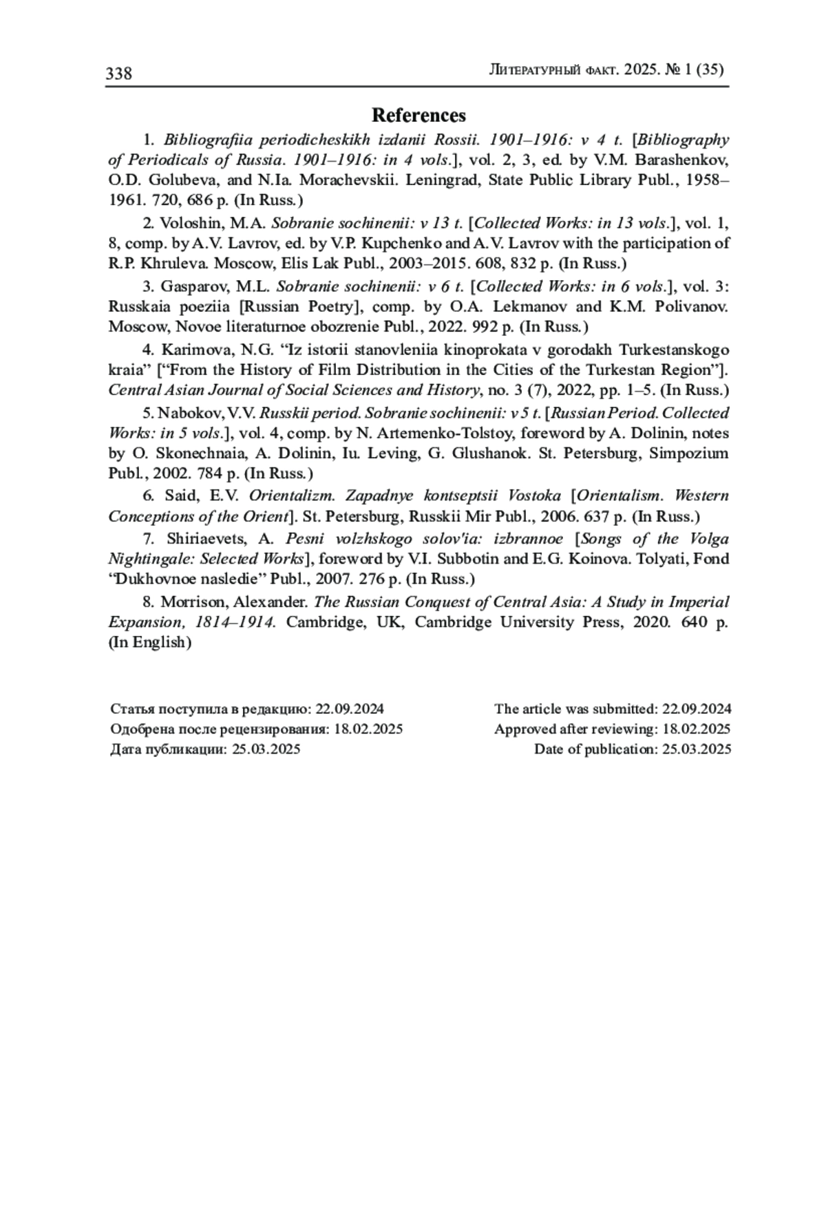 8. Morrison A. The Russian Conquest of Central Asia: A Study in Imperial Expansion, 1814-1914. Cambridge, UK: Cambridge University Press Publ., 2020. 640 p.