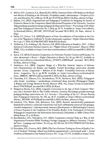 1. Банных Г.А., Костина С.Н. Концептуализация понятия цифровой зрелости университета в контексте цифровой трансформации высшего образования // Вестник Майкопского гос. технологического ун-та. 2022. Т. 14. № 1. С. 110-120. DOI: 10.47370/2078-1024-2022-14-1-110-120 EDN: GKSRTV