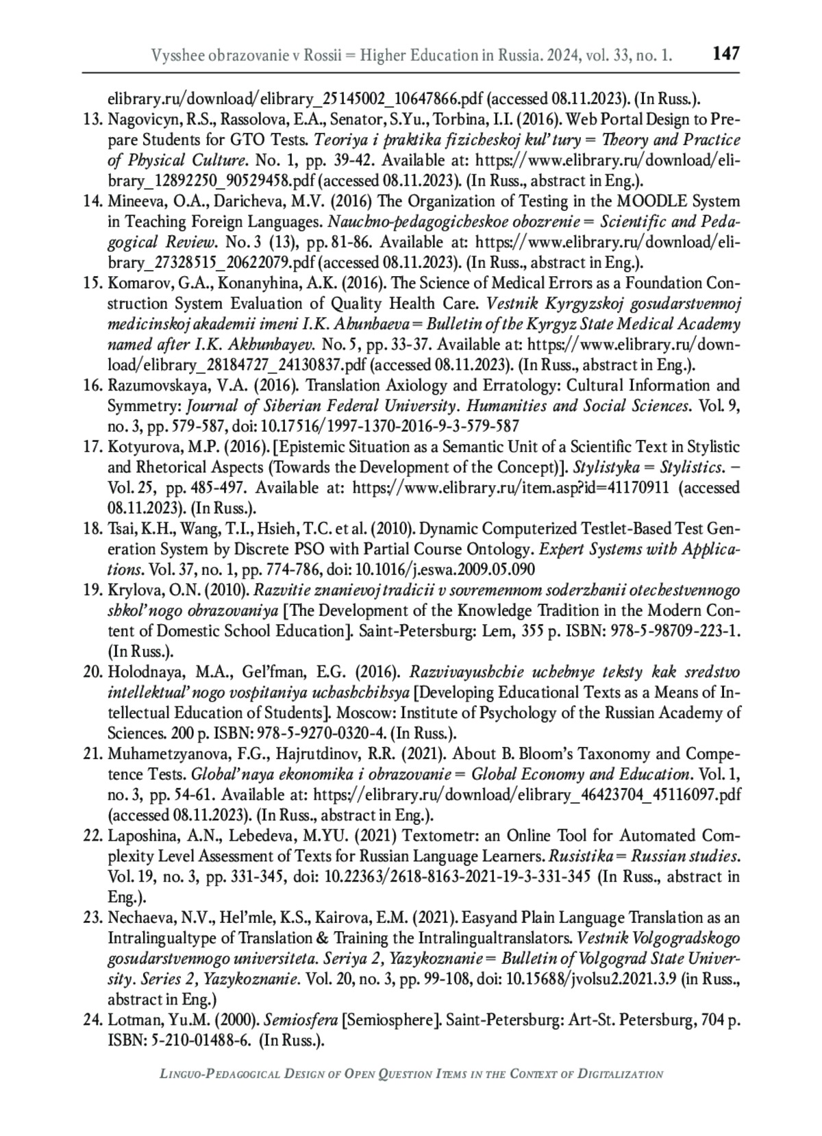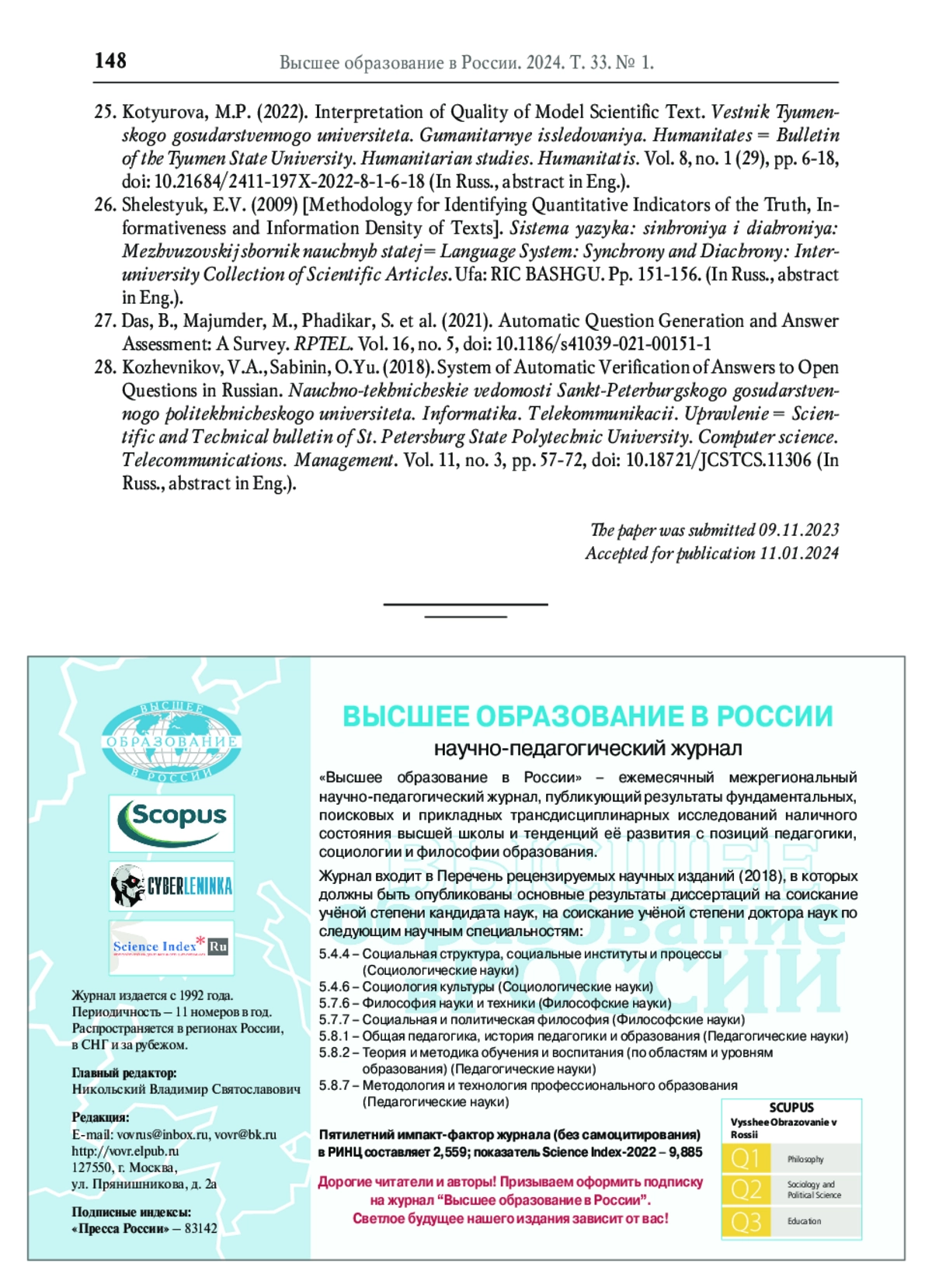 25. Котюрова М.П. К трактовке модели “качество эталонного научного текста” // Вестник Тюменского государственного университета. Гуманитарные исследования. Humanitates. 2022. Т. 8. № 1(29). С. 6-18. DOI: 10.21684/2411-197X-2022-8-1-6-18 EDN: ABPXRR