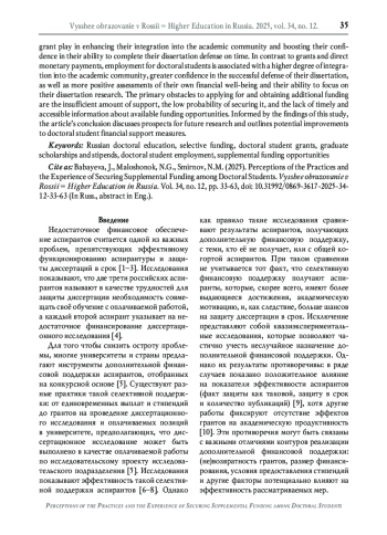5. Бабаева Д., Малошонок Н.Г. Систематический обзор финансовой поддержки аспирантов: типология практик и перспективы // Высшее образование в России. 2025. Т. 34. № 2. С. 86-107. DOI: 10.31992/0869-3617-2025-34-2-86-107 EDN: SNUIUL