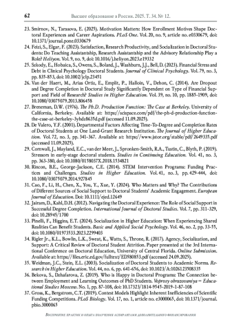23. Smirnov N., Tarasova E. Motivation matters: How enrollment motives shape doctoral experiences and career aspirations // PLoS One. 2025. Vol. 20. No. 9. Article no. e0330679. DOI: 10.1371/journal.pone.0330679 EDN: FMFIAL