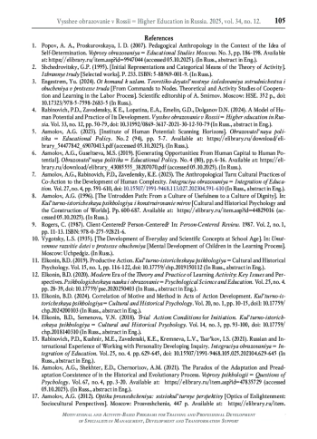7. Асмолов А.Г., Рабинович П.Д., Заведенский К.Е. Антропологический поворот: культурные практики со-действия развитию сложности Человека // Интеграция образования. 2023. Т. 27. № 4. С. 591-610. DOI: 10.15507/1991-9468.113.027.202304.591-610 EDN: PJDNGW