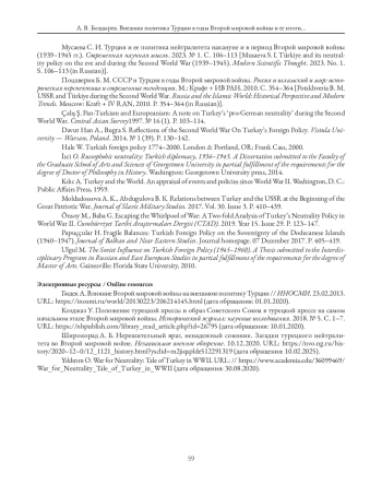 23. Yıldırım O. War for Neutrality: Tale of Turkey in WWII. URL: // https://www.academia.edu/36099469/War_for_Neutrality_Tale_of_Turkey_in_WWII(датаобращения:30.08.2020).