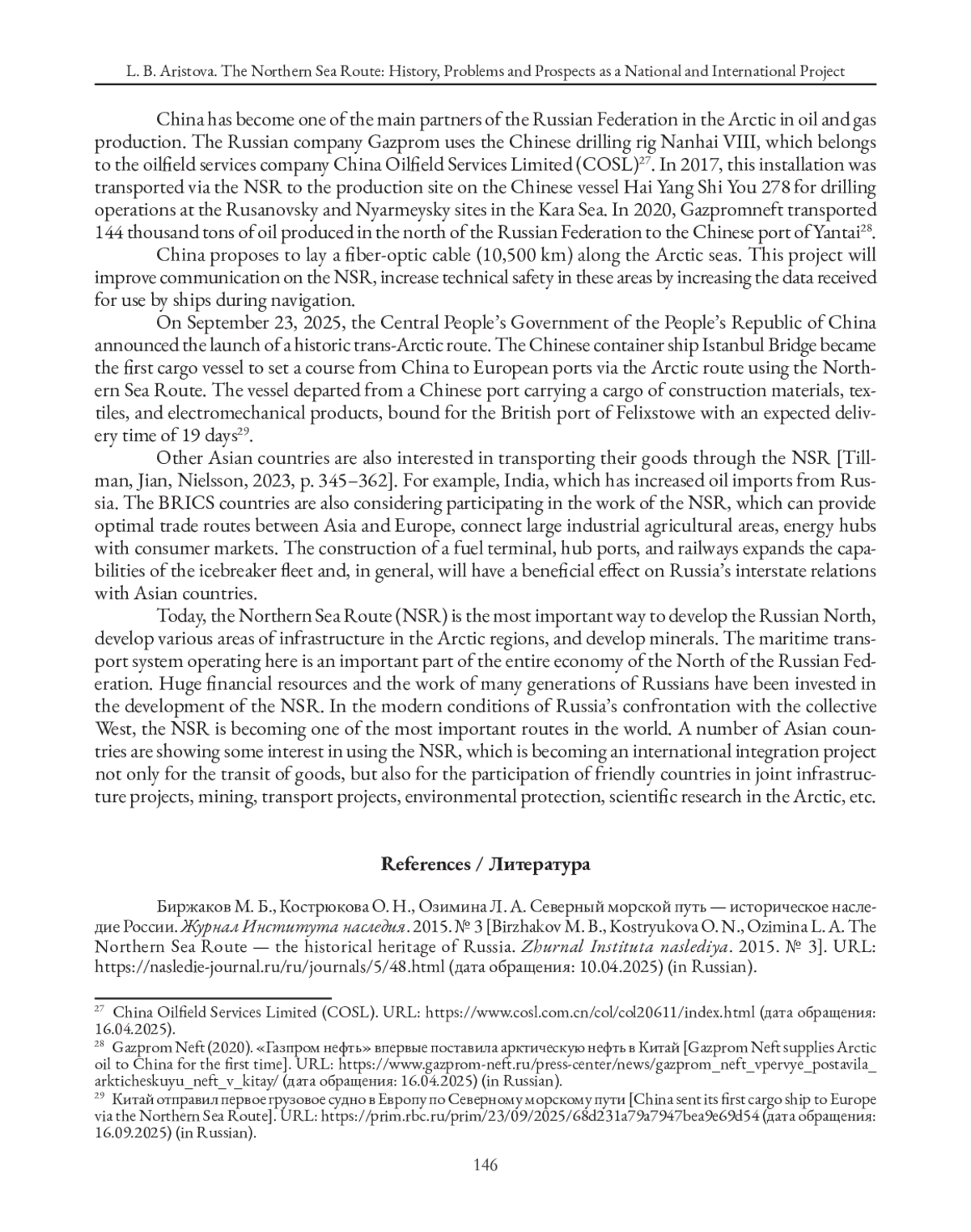 Nefedov D. Sevmorput and China: indefinite accents of mutual attraction. Fond strategicheskoj kul’tury, 23.01.2024. URL: https://fondsk.ru/news/2024/01/23/sevmorput-i-kitay-bessrochnyeakcenty-vzaimnogo-prityazheniya.html(датаобращения:16.04.2025)(inRussian).