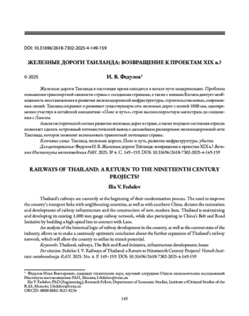 Fedulov I. V. China’s Railway Projects in Southeast Asian Countries. Southeast Asia: Current Development Issues. 2025. No. 1 (66). P. 71-86 (in Russian).